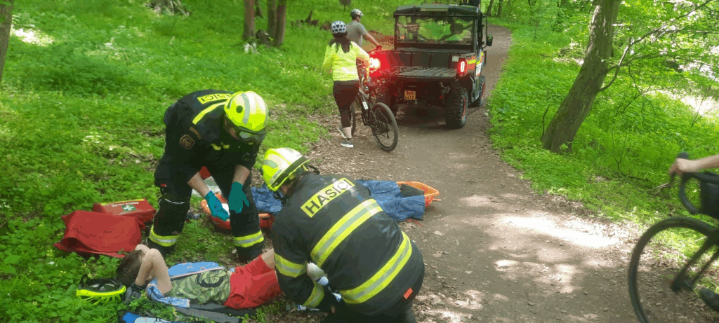 Syn musel být bezokladně převezen nejdříve hasičskou jednotkou (s ohledem na složitě přístupný terén), a poté záchrannou službou na urgentní příjem dětské traumatologie ve Fakultní nemocnici Motol, kde mu byla rána pod částečnou narkózou zašita. Celou událost může doložit několik svědků, kteří v osudnou chvíli naštěstí jeli nebo procházeli kolem a byli nápomocni při poskytnutí první pomoci a řešení celé situace.
